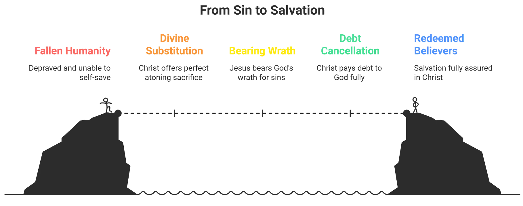 “Atonement” refers to God’s work of removing sin and guilt through Christ’s sacrificial death, so that sinners may be reconciled to Him through faith in Christ.
